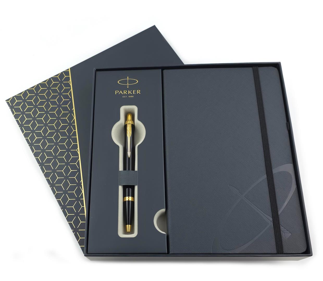 Zestaw prezentowy Parker IM czarny błyszczący lakier w wykończeniu GT - długopis w komplecie z notesem w formacie A5 w linie. Elegancki - wysokiej jakości prezent.